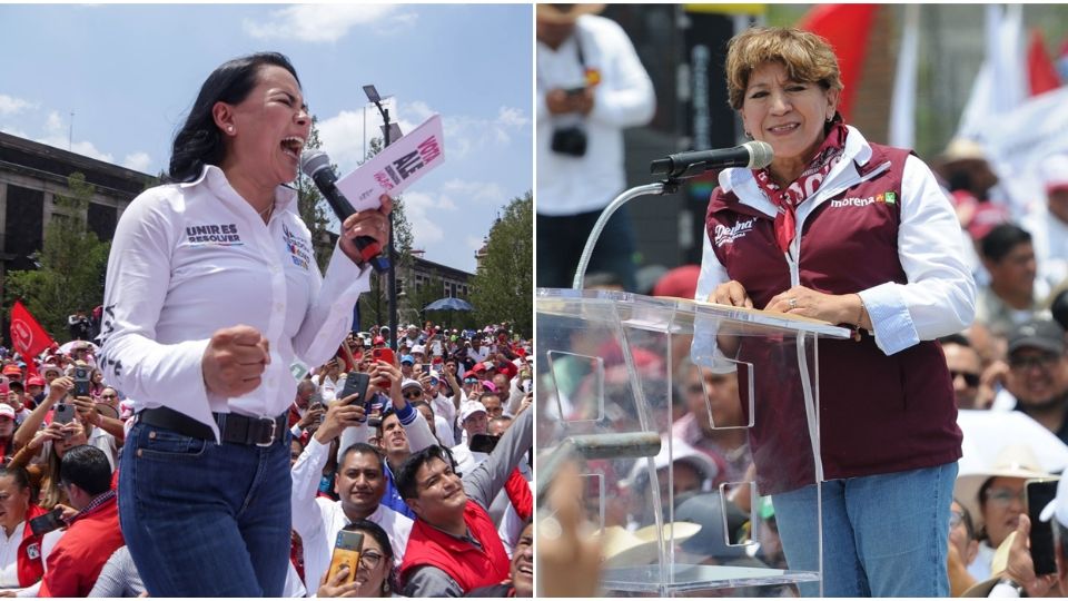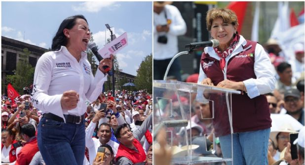 TOLUCA, Edomex.- Las campañas de las candidatas a la gubernatura del Estado de México entraron ya a la recta final y este domingo Alejandra del Moral y Delfina Gómez midieron fuerzas en Toluca, la capital mexiquense. Ambas comenzaron ya una serie de cierres regionales tras 55 días de giras por los 125 municipios del Edomex.