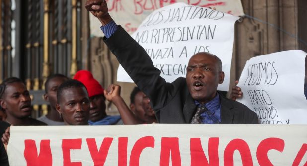 Una veintena de haitianos, en su mayoría hombres, se manifestaron desde la plaza Giordano Bruno, en la colonia (barrio) Juárez, donde cientos dormitan desde hace meses, hasta las oficinas del Gobierno de Ciudad de México, en el Zócalo.