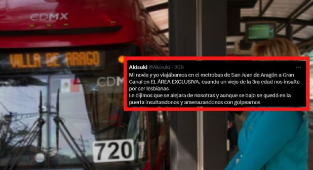 El pasado 3 de mayo, una mujer denunció a través de su cuenta de Twitter que ella y su pareja fueron víctimas de agresión lesbofóbica en el Metrobús de la Ciudad de México. La agresión y acto de odio fue cometida por un adulto mayor que viajaba en la sección exclusiva de mujeres, en la Línea 6 del Metrobús.