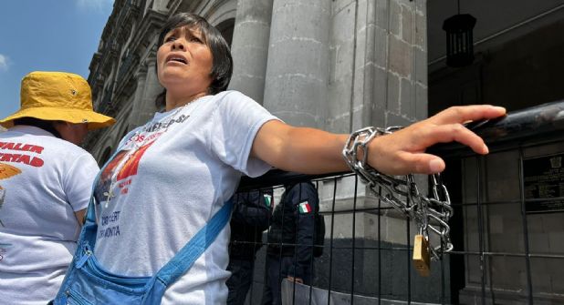 Encadenada junto a otras madres, hermanas, esposas e hijas que luchan por la libertad de sus familias, pues aseguran que están injustamente presos, Carmela se sumó a la exigencia de una audiencia con el gobernador de la entidad.