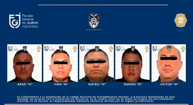 Los cinco policías fueron detenidos este fin de semana por policías de la Secretaría de Seguridad Ciudadana, y se encuentran con la medida cautelar de prisión preventiva justificada en el Reclusorio Norte.