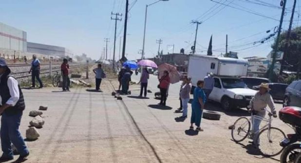 Los vecinos mantiene un bloqueo en la zona de vías y cruce de la vialidad, donde participan personal de la delegación, ejidatarios y vecinos radicados en la zona.