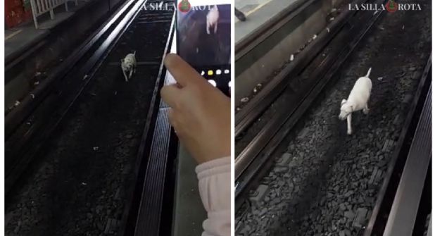 En el video se observa cuando el perrito entra caminando por las vías a la estación Universidad de la Línea 3 del Metro. El lomito color blanco avanzó tranquilamente entre aplausos de los usuarios que estaban en el anden, mientras trabajadores del Sistema de Transporte Colectivo lo seguían para rescatarlo.