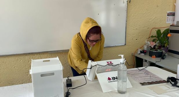 El personal del Instituto Electoral del Estado de México (INE) explicaba a cada persona su uso y les ayudaba a emitir su voto.