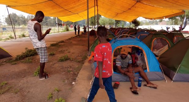 La dependencia también ha repartido unas 60 tiendas de campaña protegidas por una enorme carpa amarilla, y adapta 20 remolques para que ahí se queden más personas, ya que se espera que lleguen más migrantes, que podrían ser hasta mil 500.