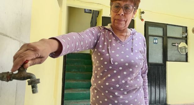 “Aquí no tenemos que levantarnos temprano a acarrear el agua, llega con tanta fuerza que solita sube hasta los tinacos, pero hoy cayeron unas gotitas y como a las 11 ya no caía nada”, asegura la vecina y enfermera retirada.