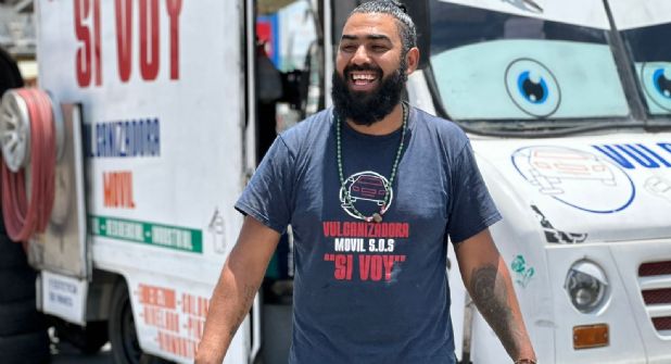En su camión modificado lleva todo lo necesario para arreglar llantas y rines, por lo que el tiempo de espera de sus clientes se reduce considerablemente, ya no tienen que andar buscando vulcanizadoras, ahora una va a ellos.
