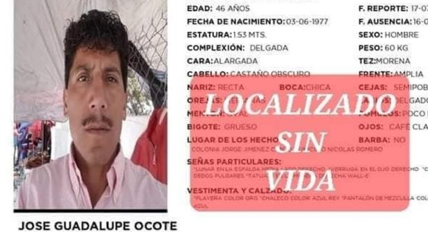 Esta tarde en la zona de San José del Vidrio al norte del municipio de Nicolás Romero fue encontrado el cuerpo sin vida de la persona que fue secuestrada, que ahora se sabe respondía al nombre de Paz José Ocote y Miriam Ocote, esta de 19 años de edad.