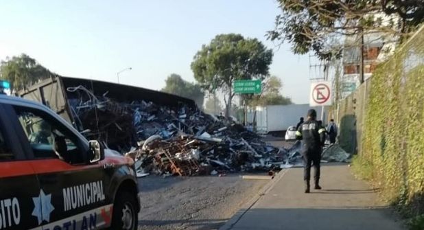 Mientras que en la carretera México-Querétaro, en el sentido norte a sur, pasando la caseta de Tepotzotlán, un tráiler con contenedor se volcó sobre su costado derecho, la mercancía consistente en chatarra quedó afectando los carriles laterales de la circulación, no se reportan personas con lesiones de consideración.