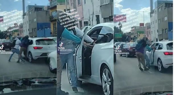 .En el video se puede apreciar como es que dos hombres forcejean con el conductor del auto de enfrente y así como también se reportó que no hubo daños mayores.