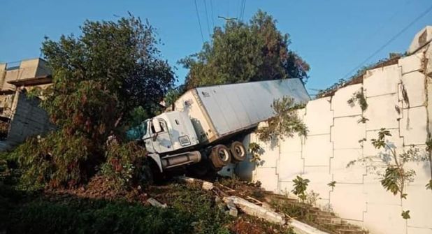 En otro hecho, el operador de un tráiler con caja seca perdió el control de su unidad y en el descontrol quedó con la cabina en una cubeta.