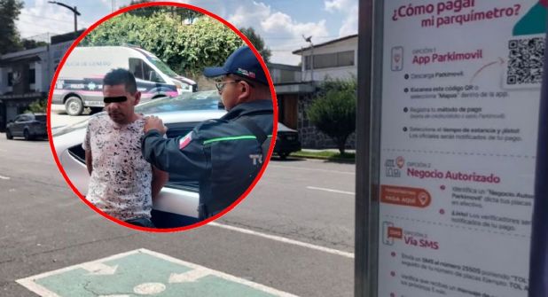 Elementos de la Dirección General de Seguridad y Protección de Toluca, Estado de México, detuvieron a un hombre que se negó a pagar el servicio de estacionamiento (parquímetro) por lo que atropelló al oficial de tránsito que pretendía multarlo y después intentó darse a la fuga.