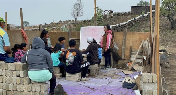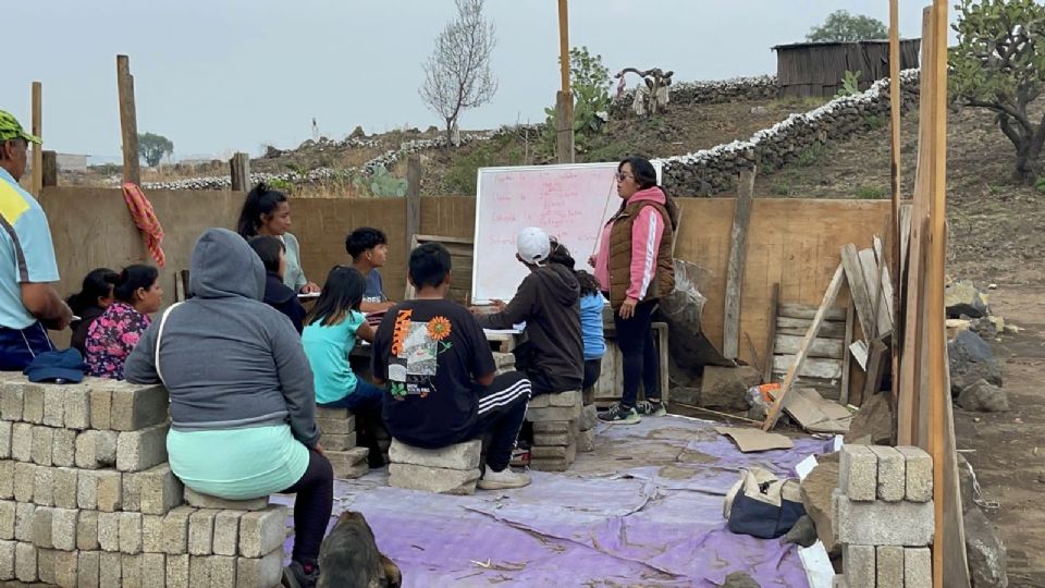 Un par de ladrillos, un pizarrón de segunda mano y tablones de madera como mesas de trabajo fueron suficientes para que un grupo de jóvenes de escasos recursos regresaran a las aulas para el inicio del ciclo escolar 2023-2024 en el Estado de México.