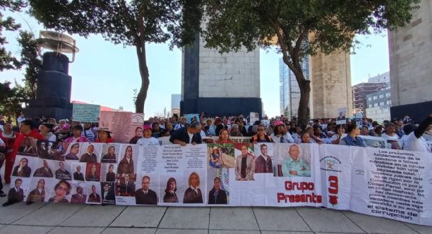 El Monumento a la Revolución fue el punto donde decenas de familias se congregaron para denunciar los casos en que alguno de sus familiares se encuentra en proceso o incluso sentenciado por un delito, que como aseguran, no cometieron.