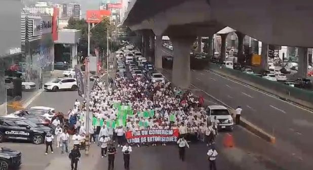 Aproximadamente 400 personas, entre comerciantes y transportistas del municipio de Naucalpan, Estado de México, realizaron una marcha, manifestación y bloqueo parcial en Periférico Norte, en el sentido a la Ciudad de México.