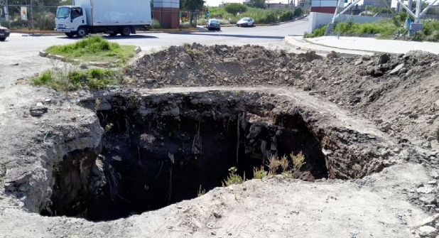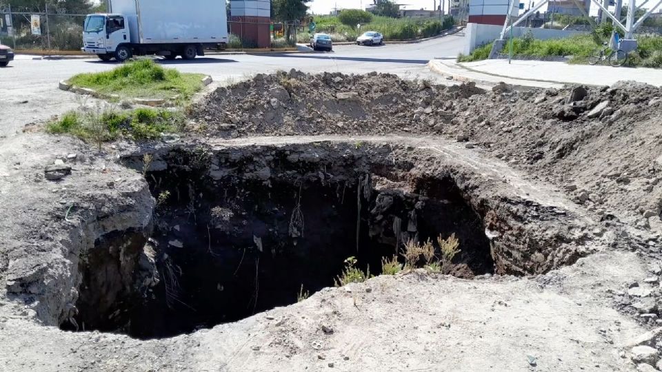 Uno de los socavones más grandes medía 10 metros de ancho y seis metros de profundidad sobre la avenida Manuel Ávila Camacho esquina con calle Toluca, en la colonia el Chamizal.