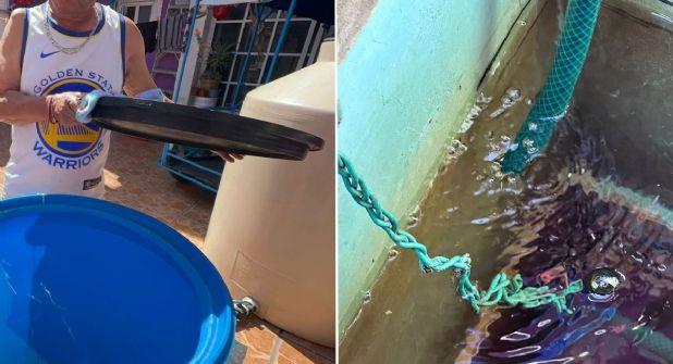 “Aquí lo que hacemos es pedir pipas, vienen dos días a la semana, miércoles y domingos que es cuando estamos agarrando, y en la esquina hay una toma donde cae agua, y ya para no pedir la pipa a veces vamos con botes y la acarreamos para solventar la casa”.