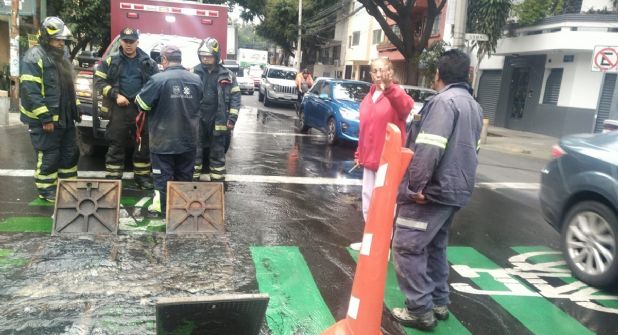 En este caso, los trabajadores de SACMEX realizan el cierre válvulas para evitar el desperdicio de agua y posteriormente localizar el lugar de la fuga para proceder a la reparación de la tubería.