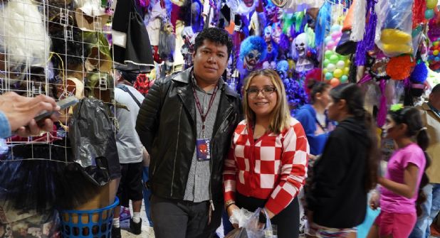 Fátima y Edgar salieron de su trabajo y aprovecharon la cercanía del Mercado de Sonora para hacer una compra de último momento. La celebración de Halloween en su oficina los convenció y compraron disfraces.