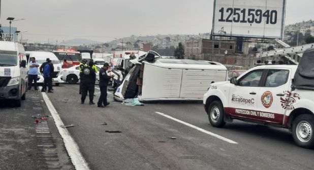 La volcadura de una combi de transporte público cerca de la caseta de cobro de San Cristóbal, en el municipio de Ecatepec, antes de llegar a la autopista México-Pachuca provocó intenso tráfico en la zona ante la movilización de los cuerpos de emergencia que llagaron al lugar del accidente, donde el conductor del vehículo resultó lesionado.