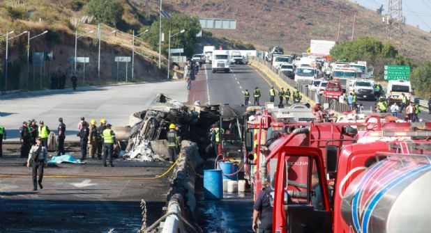 La tarde del 28 de noviembre, en la autopista Chamapa-Lechería, a la altura de la caseta de peaje de Madín en Atizapán, se registró un accidente con una pipa de Pemex que, tras impactarse en la valla de contención de concreto, volcó y explotó.