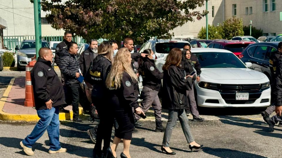 Agentes y peritos ingresaron al Hospital Materno Perinatal "Mónica Pretelini", en la Ciudad de Toluca, en donde permanecieron por casi dos horas.