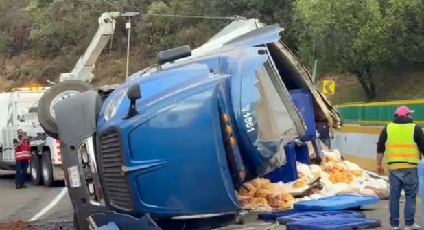 La autopista México-Cuernavaca registra afectaciones en ambos sentidos debido a la volcadura de un tracto camión en el kilómetro 66, informaron autoridades de Caminos y Puentes Federales (CAPUFE).