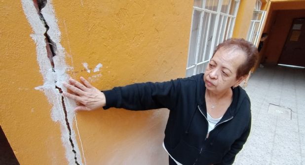 La señora Josefina Ayala también lleva dos meses y dos días viviendo fuera de su departamento de la calle Los Echave, en Mixcoac. Luego de los dos sismos registrados este 14 de febrero, observa más afectaciones en su propiedad.