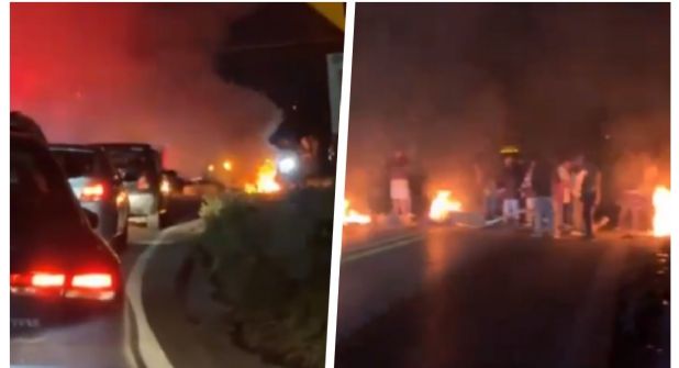 En los videos, se puede ver que los inconformes prendieron fuego en el bloqueo en la noche de este lunes 19 de febrero de 2024.