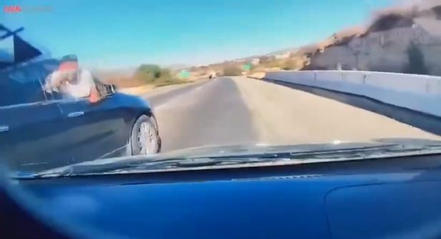 Asimismo, otro vehículo con una persona que lo amenaza con un arma de fuego, trató de parar al automóvil que logró grabar este momento de tensión, pero el conductor consiguió evitarlo y seguir quedando a salvo de los criminales.
