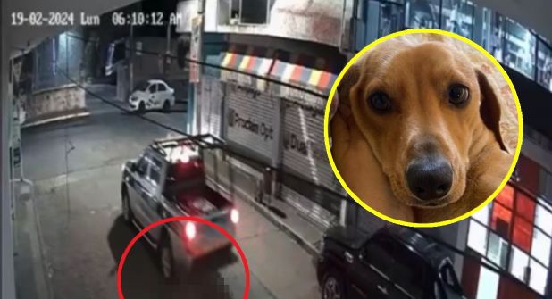 Aunque no llevaba correa, el lomito seguía a su dueña, quien cruzó la calle. Pero cuando Caramelo iba cruzando, una patrulla municipal lo arrolló, pero no se detuvo y siguió su camino.