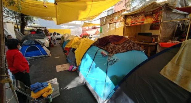 Tras el desalojo, los comerciantes pernoctaron primero en cartones y entre los esqueletos de los puestos semifijos de la zona, posteriormente con cobijas y colchonetas; actualmente, han colocado un campamento sobre el paso de los autos.