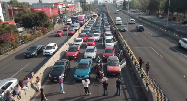 En estos momentos bloquean también el viaducto elevado a la altura del Parque Naucalli, la vía de paga que en esta hora circula de sur a norte. Y se preparan para bloquear laterales de sur a norte también.