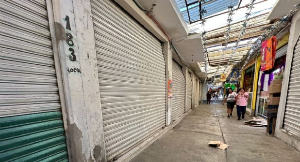 En el lugar, locatarios afirman que se les exige pagar una "cuota" de 500 pesos mensuales por negocio, por lo que varios han decidido cerrar sus cortinas itermitentemente.