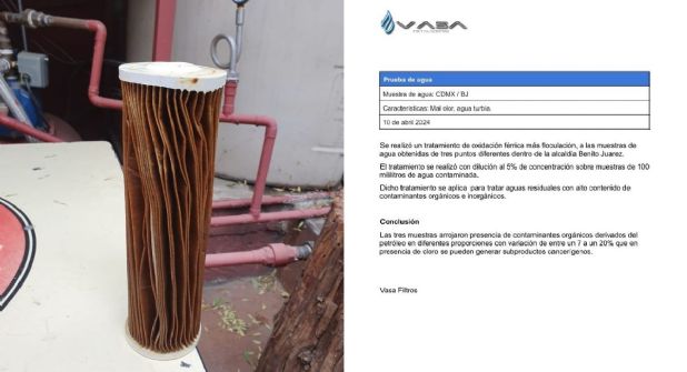 Luego de casi dos semanas desde el primer reporte de mala calidad del agua y olor a combustible en la alcaldía Benito Juárez, y ante la creciente preocupación de la población, la empresa privada Vasa Instalaciones, proveedora de filtros en varios edificios de la zona, llevó a cabo su propio estudio. Los resultados indicaron la presencia de contaminantes derivados del petróleo en el agua, en diferentes concentraciones.