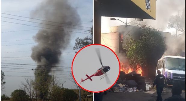 De acuerdo con lo reportado en redes sociales, el helicóptero se desplomó en un predio donde guardan transporte público rotulado con la marca Bardahl.