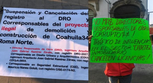 - Suspensión y cancelación del registro al DRO y corresponsables del proyecto ilegal de demolición y construcción del inmueble en Coahuila 34.