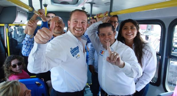 El abanderado de Va X la Ciudad de México estuvo colocando propaganda en unidades del transporte público, acompañado del candidato a repetir como alcalde en Coyoacán, Giovanni Gutiérrez.