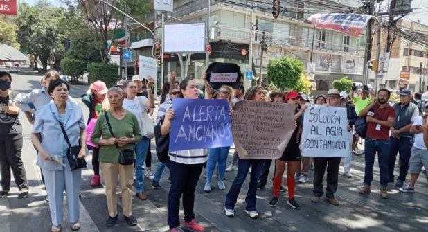 Vecinos de la alcaldía Benito Juárez bloquearon este martes la Avenida Insurgentes Sur en protesta por el agua contaminada que reciben en sus hogares desde hace dos semanas y de la cual aún se desconoce el origen.