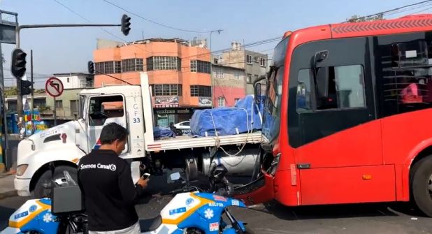 Un fuerte accidente entre unidad del Metrobús de la Línea 5 y un tráiler dejó como saldo seis personas lesionadas, a la altura de Circuito Interior y Eje 3 Oriente Eduardo Molina, en la alcaldía Venustiano Carranza, derivado de este incidente la circulación en la zona se encuentra afectada en lo que se realizan las maniobras para retirar las unidades siniestradas.
