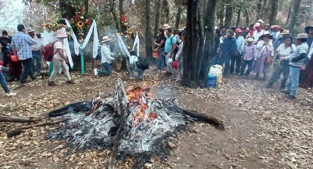 Nicolás Romero, Estado de México.- Como cada año grupos de vecinos de San Francisco Magú, comunidad indígena que se encuentra al norte del municipio de Nicolás Romero, acudieron al cerro Las Cruces o cerro de las Acaparrosas, en Tepotzotlán, donde realizaron rituales ancestrales pidiendo lluvias a Tláloc (dé ndëhë en otomí), tradición que realizan desde hace muchos años.