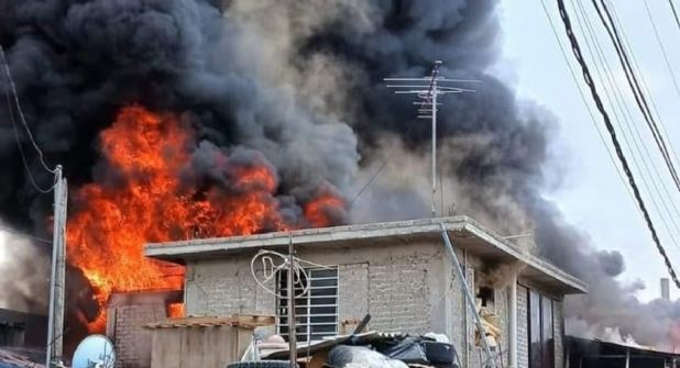 “Atienden un incendio en una fábrica de residuos y colchones; en el municipio de Chimalhuacán sobre camino viejo a Huatongo”