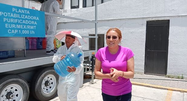 Ante el desabasto, en al menos tres puntos del municipio se han colocado unidades para llenar garrafones sin costo, para que la ciudadanía cuente con agua purificada.