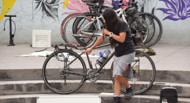 "Últimamente, todos mis talleres son sólo para mujeres y personas de la comunidad LGBT, sobre todo personas trans. Los talleres son de mecánica, de habilidades ciclistas y deportivas. Creo que este conocimiento se nos ha negado durante mucho tiempo, es un conocimiento que ha estado concentrado en un nicho específico, la bicicleta fue una herramienta exclusiva de los hombres, eso no significa que sea malo, simplemente casi todas nosotras no anduvimos en bici mucho parte de nuestras vidas".