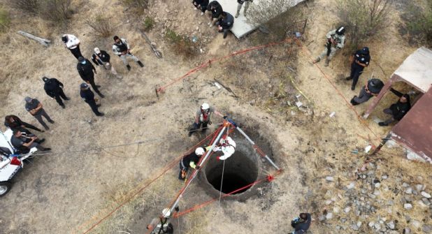 Las diligencias en campo se iniciaron el 22 de abril, luego de que fue localizada una excavación identificada como “Pozo Uno”, cuyas dimensiones aproximadas son de cuatro metros de diámetro por 40 de profundidad, donde fueron encontrados restos humanos correspondientes a seis cuerpos, por las prendas de vestir que portaban y por la información de los boletines de búsqueda, se estableció coincidencia con cuatro masculinos previamente reportados como desaparecidos y que eran conductores de servicio de transporte público por aplicación.