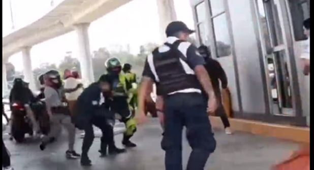 El zafarrancho se armó cuando los vigilantes de la caseta se percataron de lo que intentaban hacer los motociclistas, por lo que de inmediato intentaron poner orden en la caseta y pedirles que pagaran su peaje, a lo que los motociclistas respondieron con violencia e iniciaron a empujarlos y lanzarles golpes.