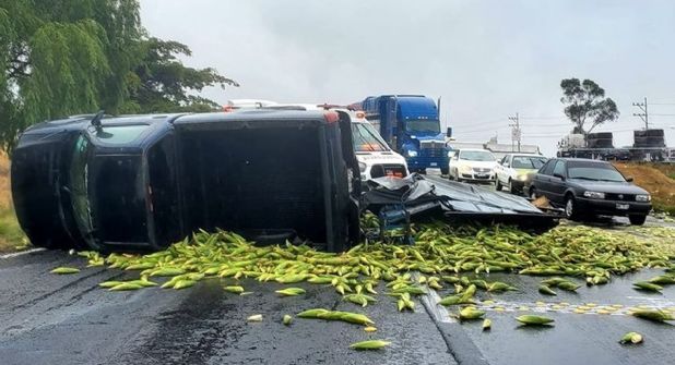 La camioneta pick up transportaba elotes, los cuales quedaron tirados en el camino de la carretera Toluca-Atlacomulco, por lo que pobladores de la zona hicieron actos de rapiña.