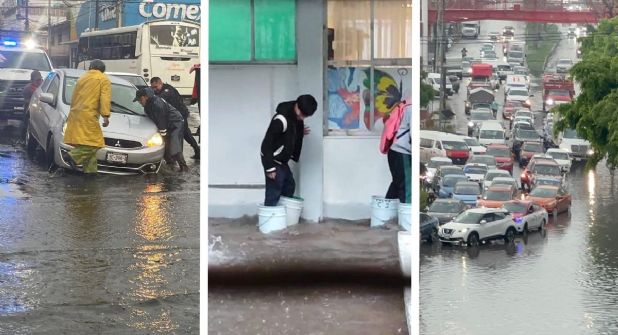 En ese punto, prácticamente las calles se convirtieron en ríos ante la saturación del drenaje y la intensa precipitación que se registró por más de 30 minutos. Hasta el momento las autoridades no han reportado un balance sobre las afectaciones.