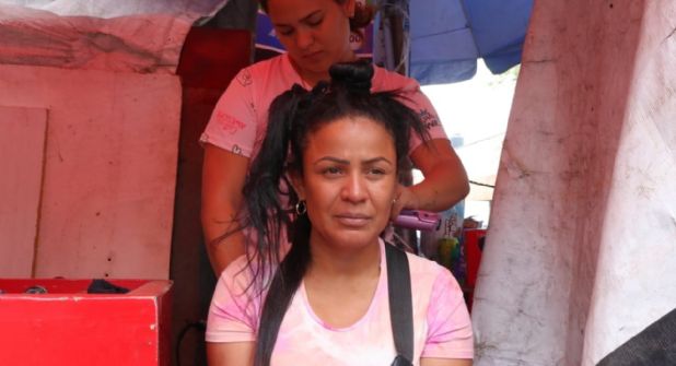 En La Merced Gabriela instaló un puesto provisional donde hace recargas de celulares. También brinda servicio de planchado de cejas y rizado de pestañas, oficios que aprendió en Venezuela, donde dejó su estética, donde trabajó por varios años. Para ella y su familia, volver a Caracas no representa una opción debido a la situación económica que los mantenía viviendo al día.