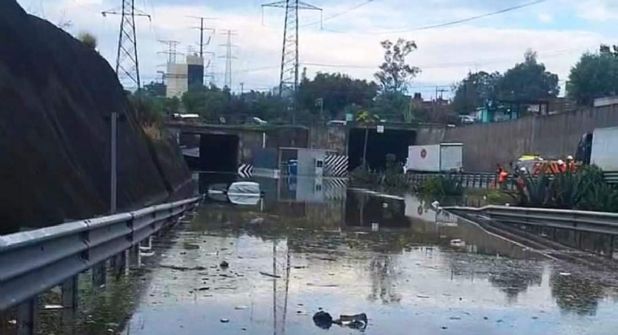 Debido a las inundaciones que se registraron por la lluvia en la zona de Cuautitlán Izcalli, en el Estado de México, se encuentra cerrado a la circulación el Circuito Exterior Mexiquense, a la altura del kilómetro 2, en Valle de las Flores.